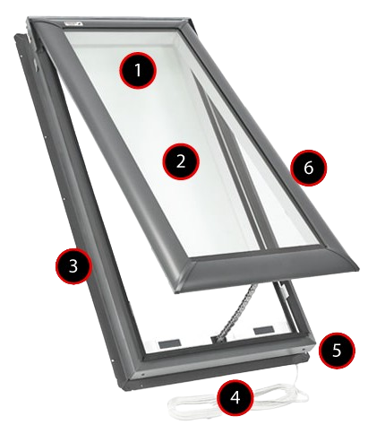 - -Deck mounted electric powered skylight (VSE) is suitable for 14 - 85 roof pitch
